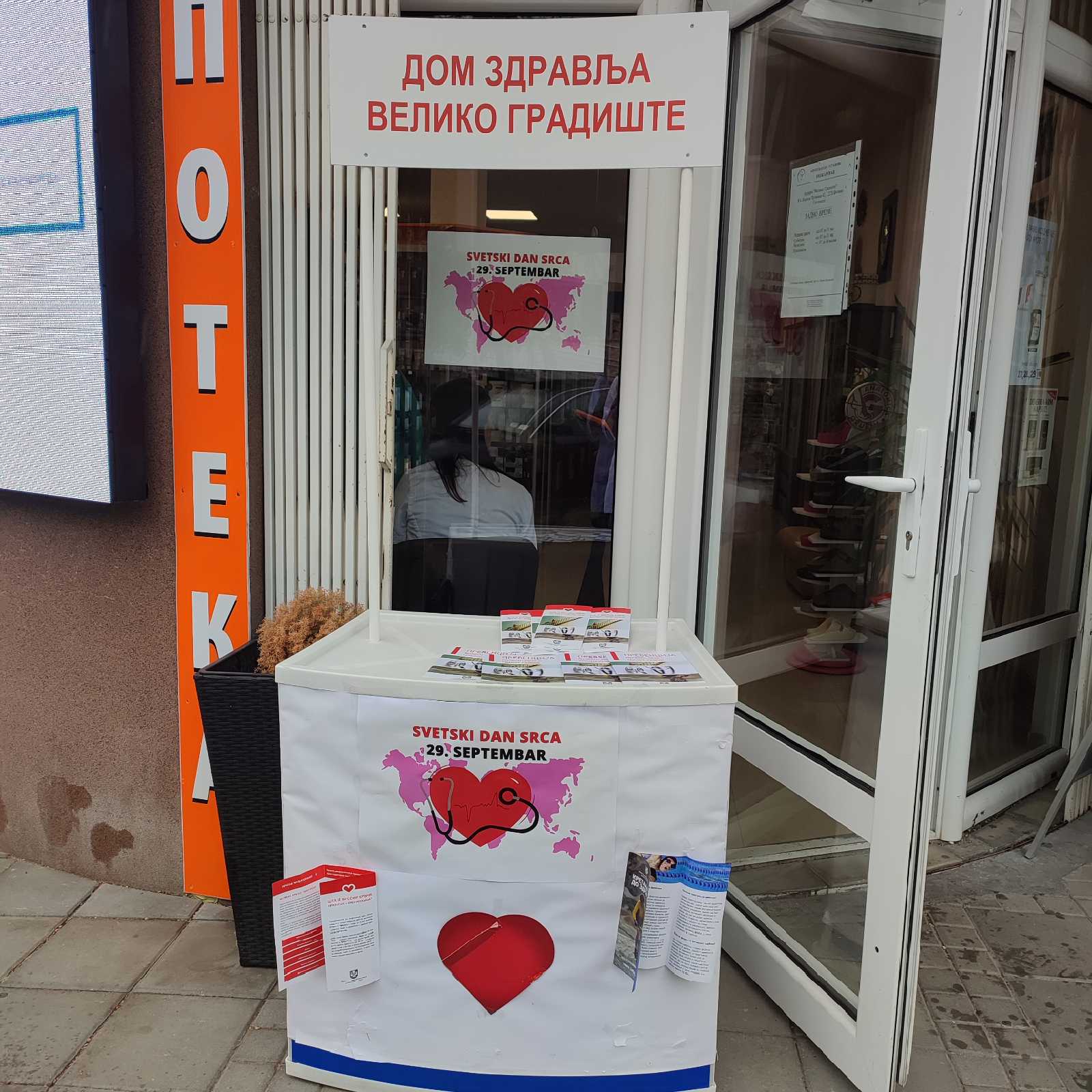 Светски дан срца, глобална иницијатива посвећена подизању свести о кардиоваскуларним болестима, обележен је данас у апотеци у Великом Градишту.